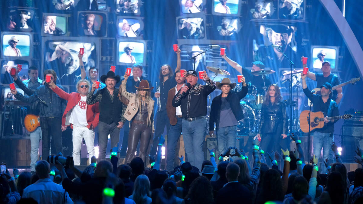 AUSTIN, TEXAS - APRIL 07: (L-R) Ronnie Dunn, Sammy Hagar, Kix Brooks, Lainey Wilson, Riley Green, Roger Clemens, and Lukas Nelson speak onstage during the 2024 CMT Music Awards at Moody Center on April 07, 2024 in Austin, Texas. (Photo by Hubert Vestil/Getty Images)Photo: Hubert Vestil / Getty Images Entertainment / Getty Images